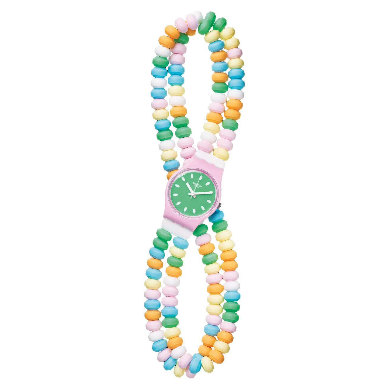 - The double tour elastic strap features multicoloured plastic "candy style" links.