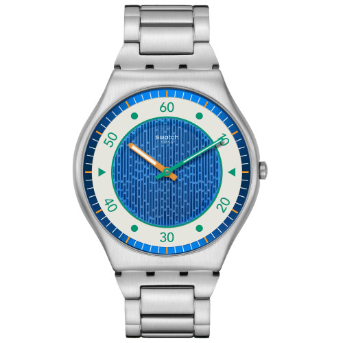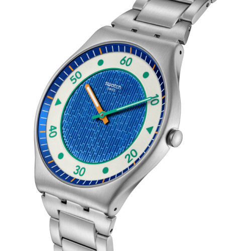 - The blue dial with green and orange print features glow-in-the-dark and innovative 3D details.