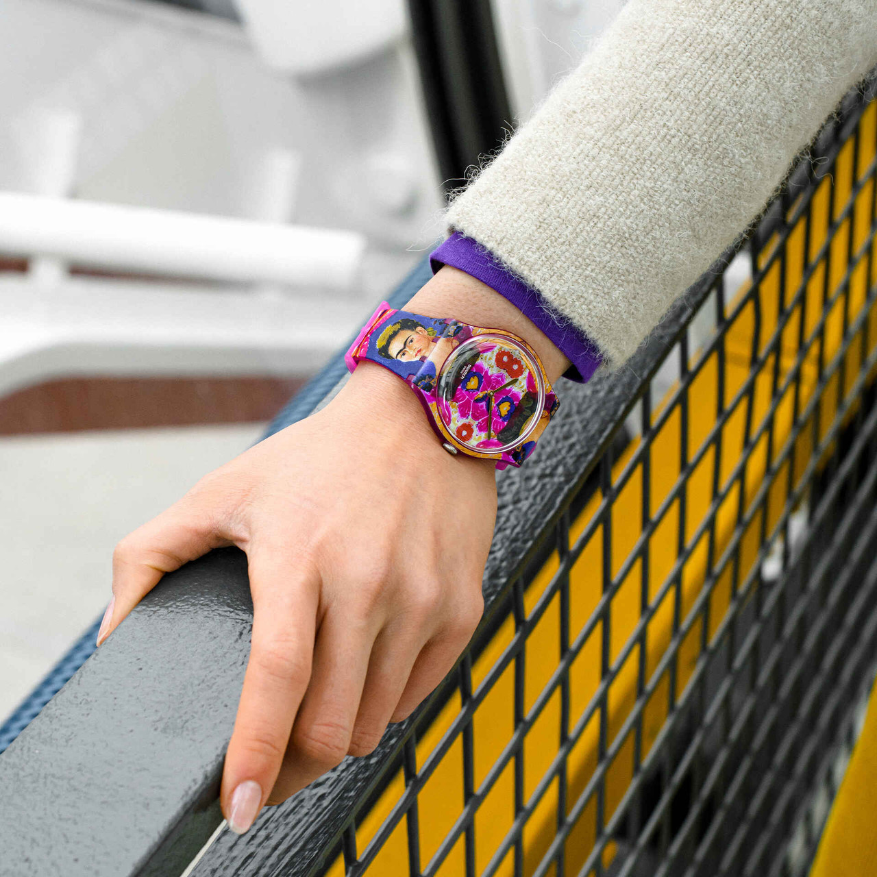 - This Swatch art collaboration New Gent watch celebrates the iconic Frida Kahlo painting, 'The Frame', as part of the Swatch X Centre Pompidou Collection.