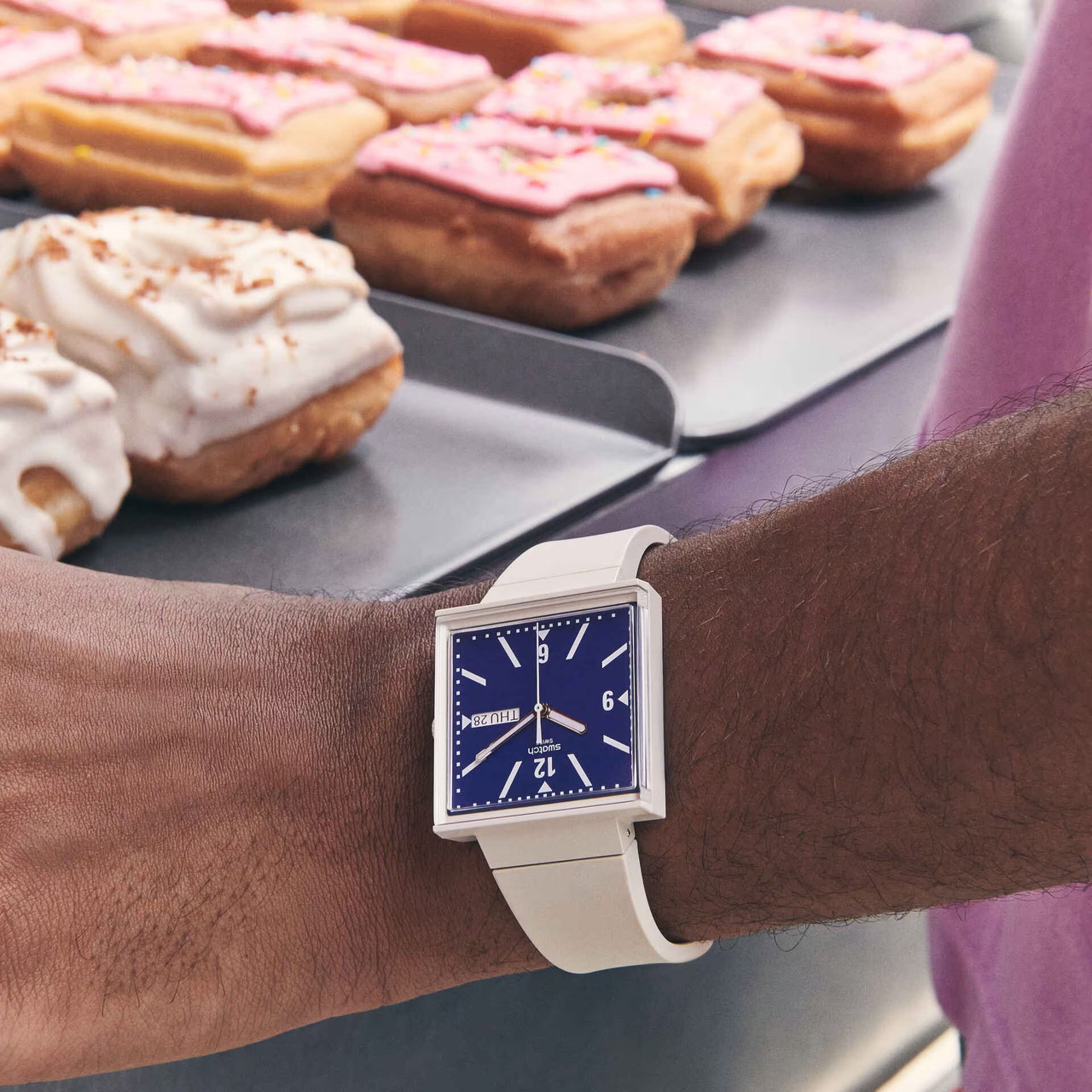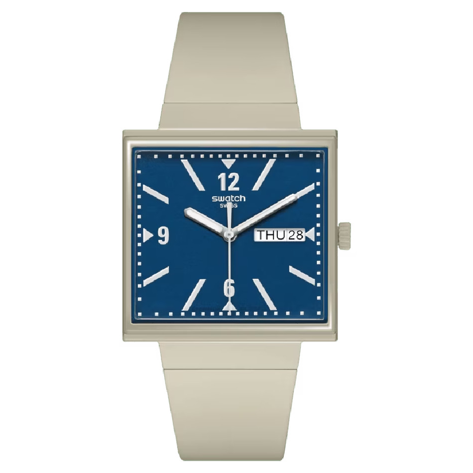 - Enter a playful parallel universe where our first Swatch ever made goes from round to square, courtesy of our game-changing bioceramic material.