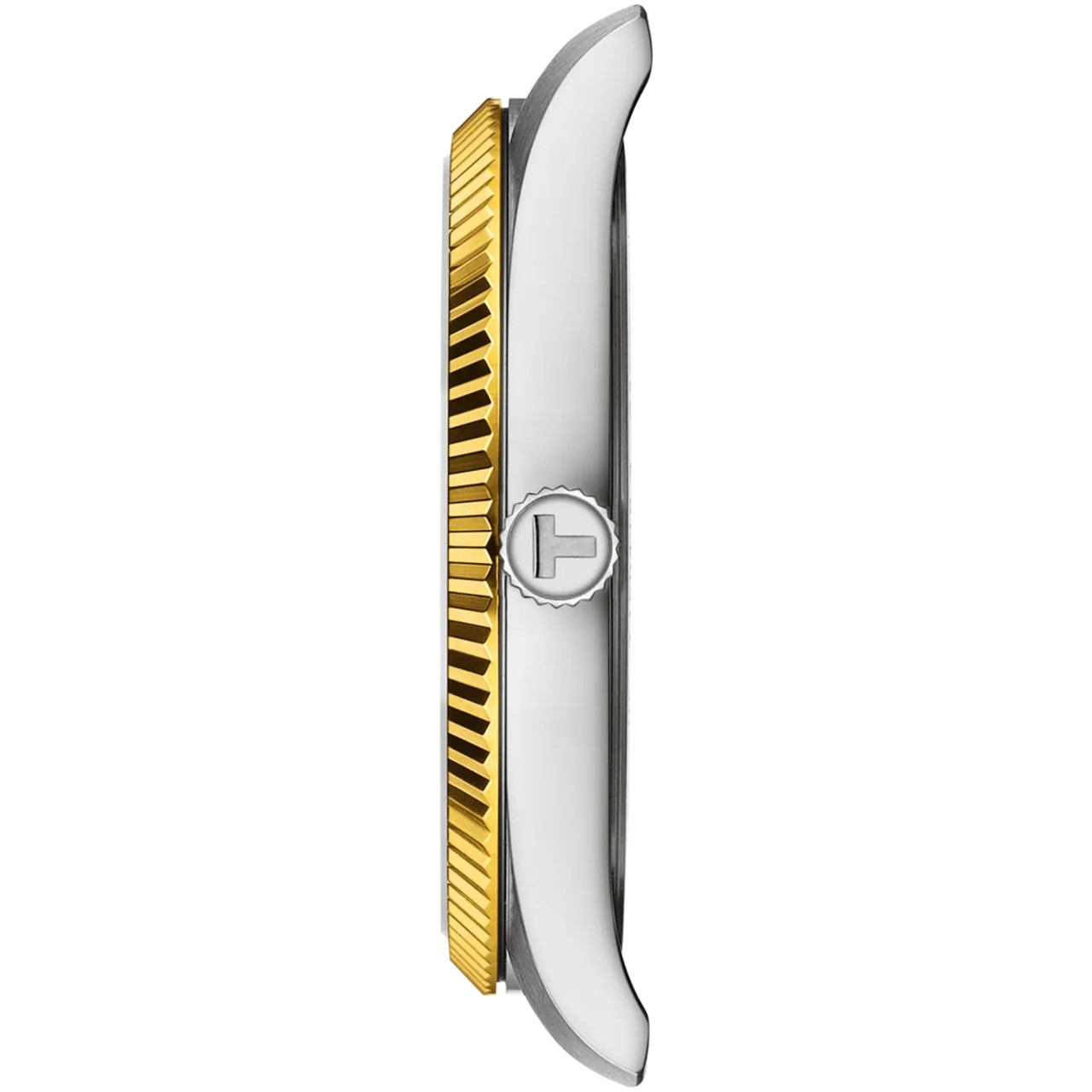 - A two-tone stainless-steel case watch with yellow gold PVD coated bezel.