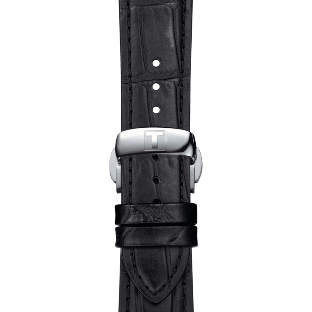 - A black leather strap finished with a butterfly clasp with push-buttons to ensure security on the wrist.