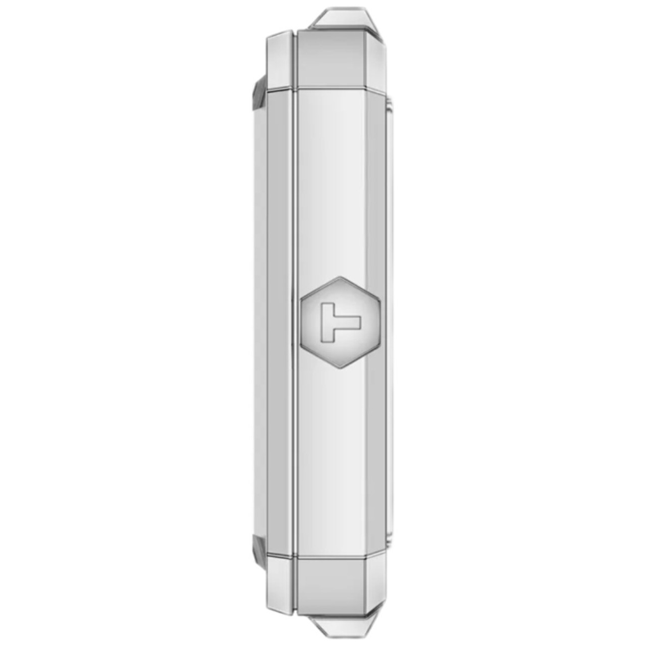 - A grey interchangeable quick release bracelet with butterfly clasp and push-buttons to ensure security on the wrist.