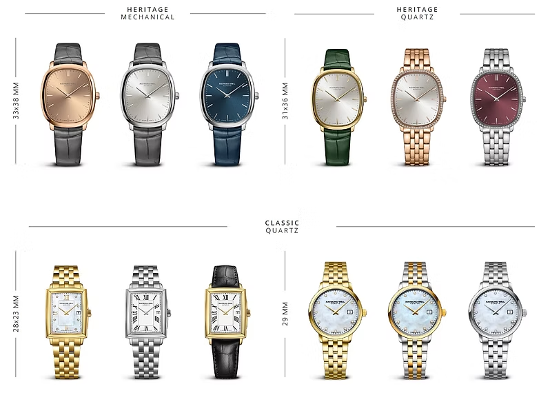 Raymond Weil’s connection with the arts — particularly music — is one of its defining characteristics. From the start, the brand drew inspiration from musical harmony, rhythm and emotion. This influence runs through its collection names: Amadeus, Toccata, Maestro, and Tango, among others.