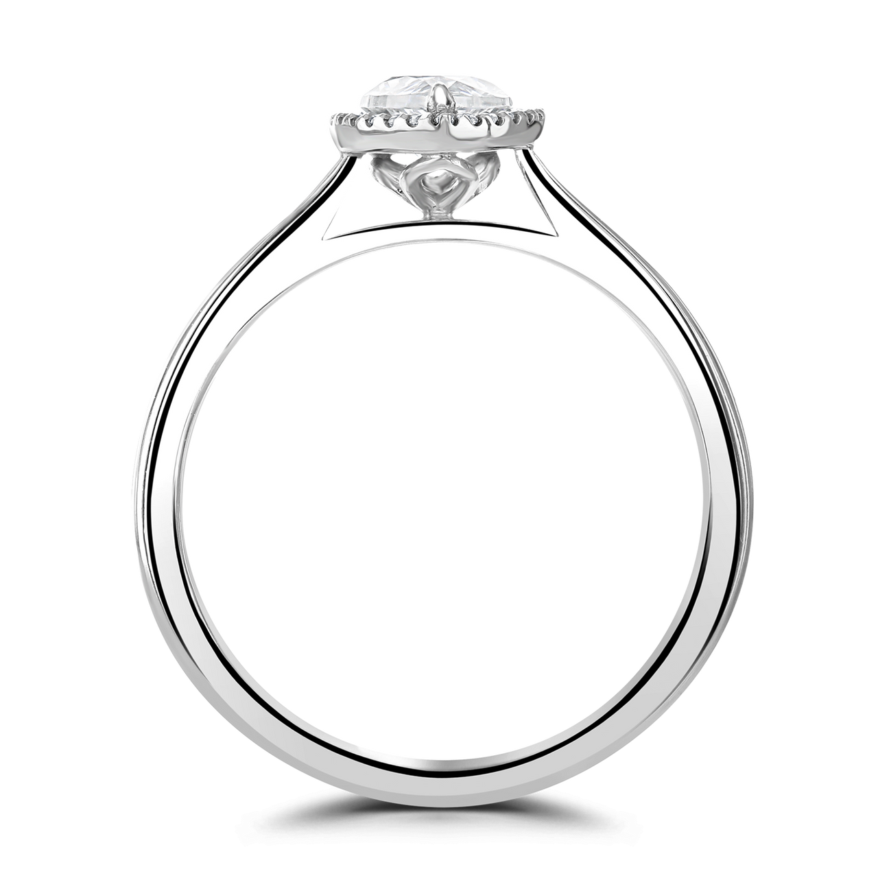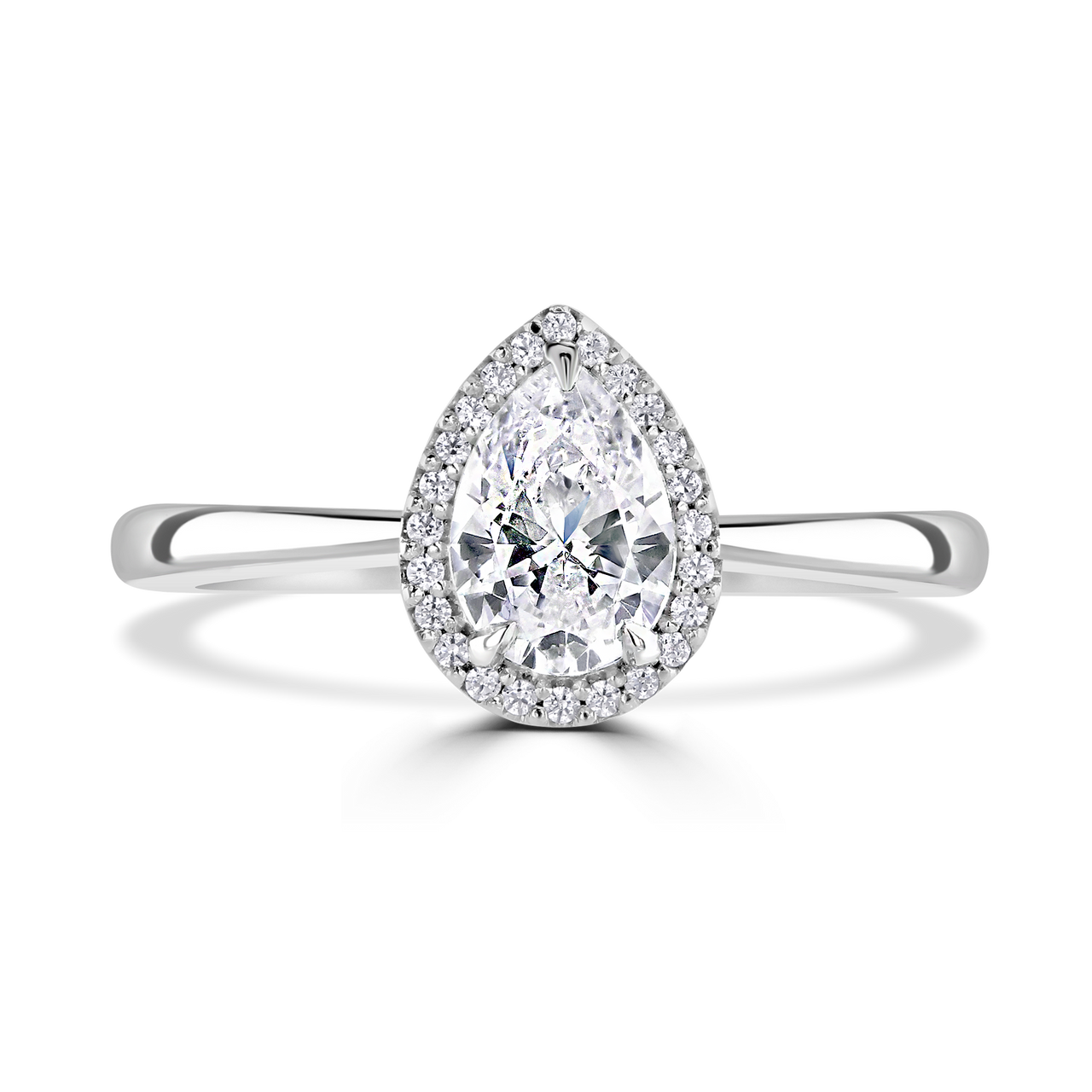 - Stunning Diamond Halo Platinum Ring 1ct Diamond 1.14 Carat Total Pear Cut Plain Shoulders.
