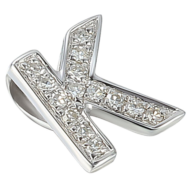 - Gold initial K pendant charm, pave set with fine diamonds along the letter.