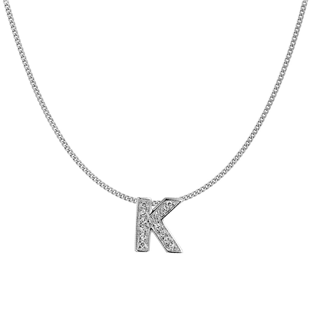 Natural Diamonds Initials Necklace | K | 9ct White Gold | Chain