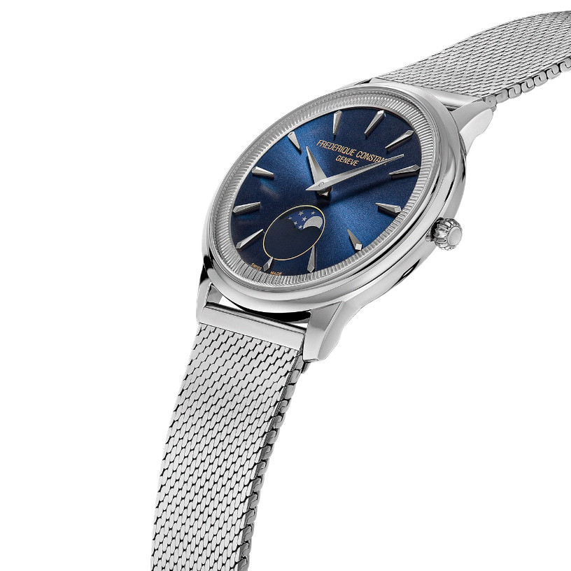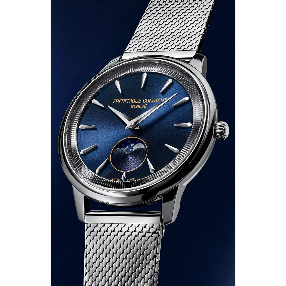 - The Frederique Constant classics moneta moonphase collection features a fluted flange reminiscent of the edge of a coin, which inspired its name.