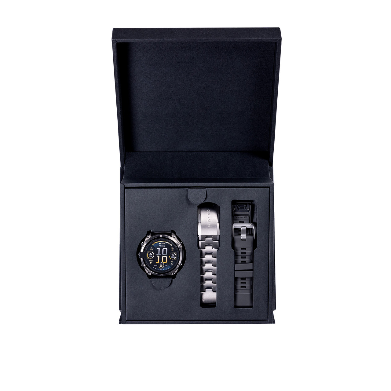 Built to endure, this premium design is dive-rated and features leakproof buttons, a metal sensor guard cover and bright 1.4″ AMOLED display with options for a scratch-resistant lens and titanium bezel. It’s tested to U.S. military standards for thermal, shock and water resistance.