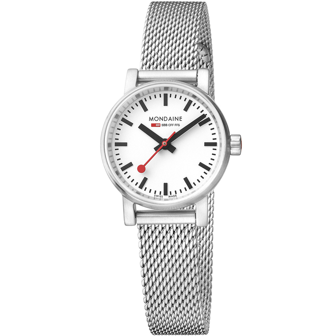 - Official Swiss Railway design, including the iconic red second hand.