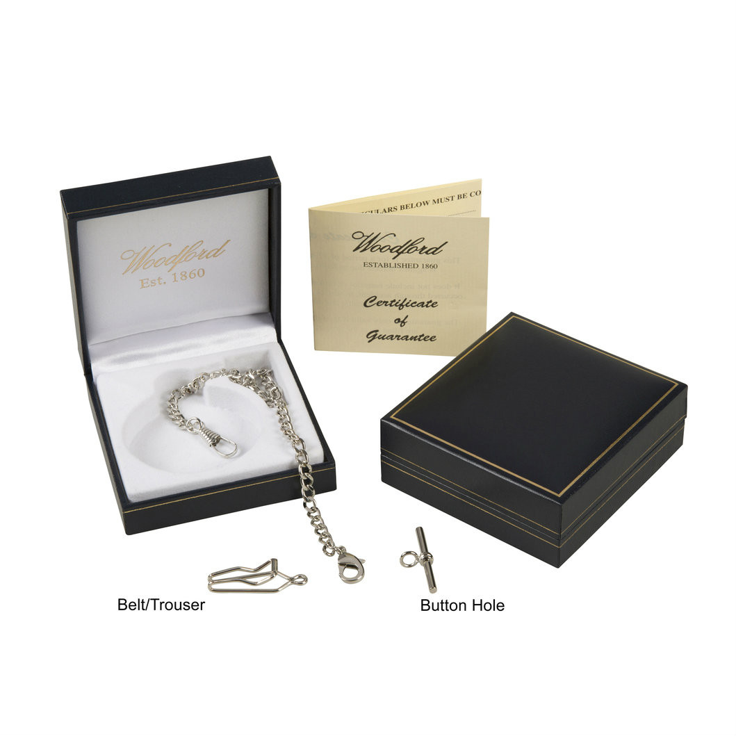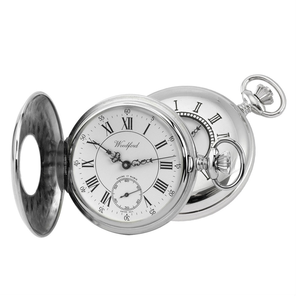 - Woodford pocket watch in a chrome finished half hunter style case.