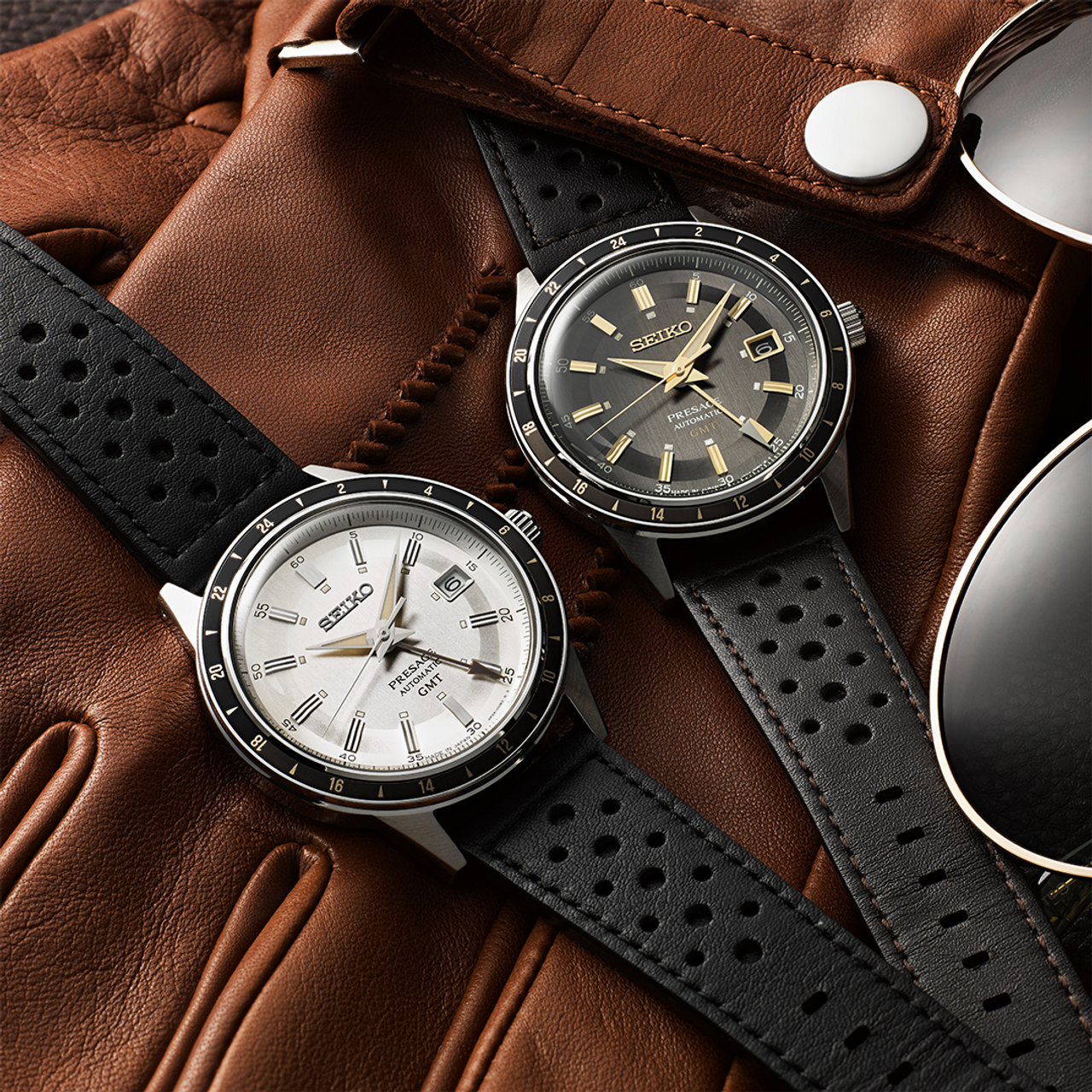 - The essence of the Seiko Presage Style 60s collection is vintage style, which continues with the ‘road trip’ theme of this model, inspired by the iconic 1960s cars; their wheels, levers and instruments and colour scheme. Its hairline finishing gives it a machine-like feel, whilst the new GMT dial layout incorporates the details of the original Seiko 1964 crown chronograph.