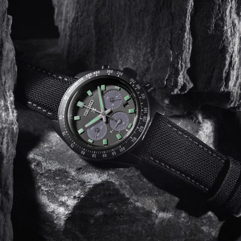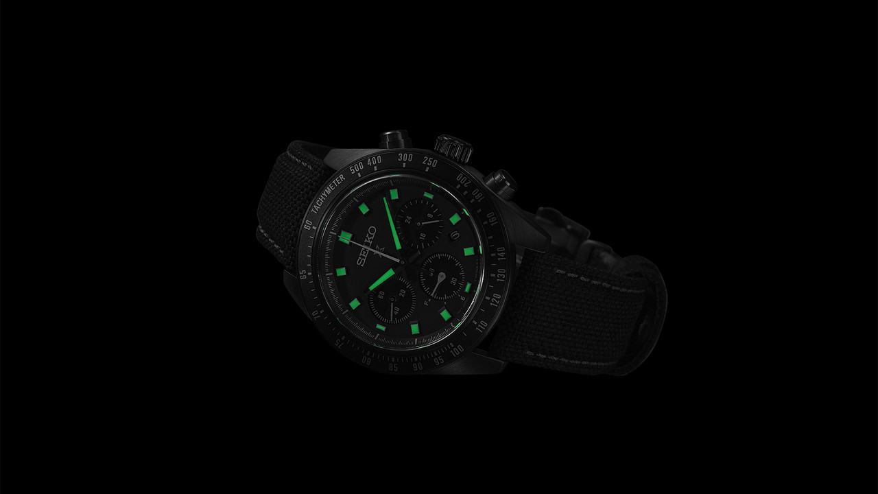 - A new edition within the Prospex ‘Black Series’ series collection, this ‘Night Vision’ Speedtimer watch depicts underwater night diving views seen through a night scope.